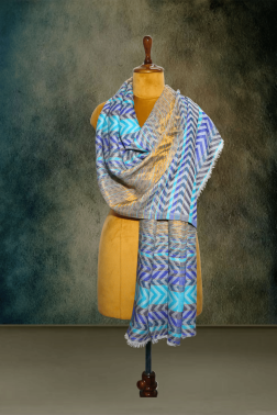 Azure Zig Zag Cashmere Fine Wool zari Stole