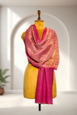 ₹2,500This modern take on Kashmiri artistry features a striking design of horizontal stripes interspersed with delicate, shimmering Zari threads that catch the light beautifully.