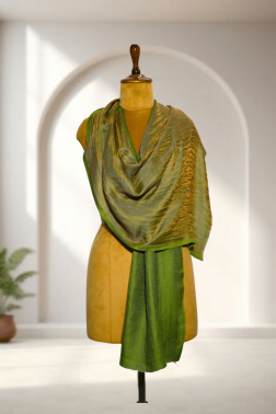 The captivating metallic shimmer contrasts beautifully with the rich green base, making this accessory versatile for both day and formal evening wear and a true testament to fine Kashmiri craftsmanship.