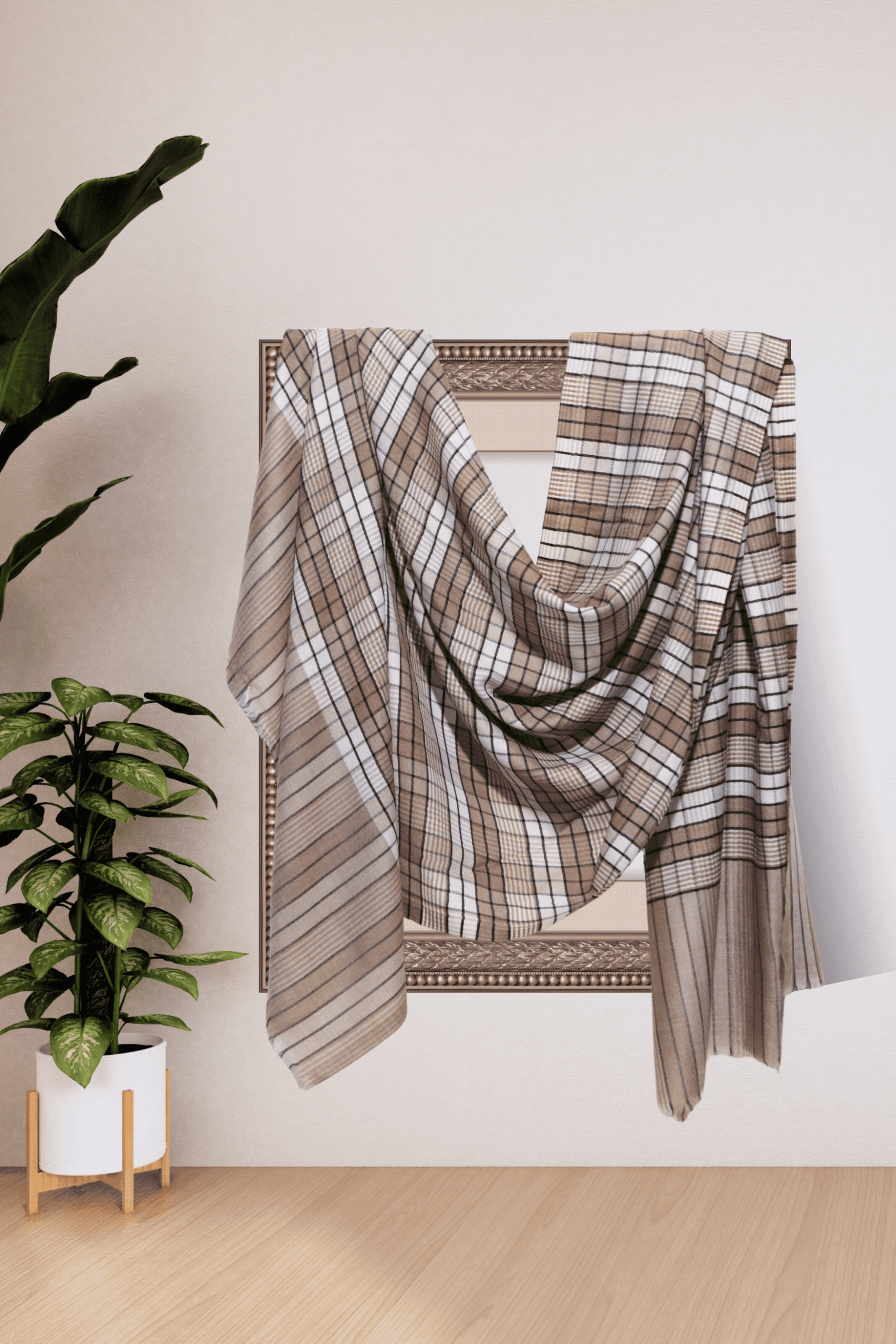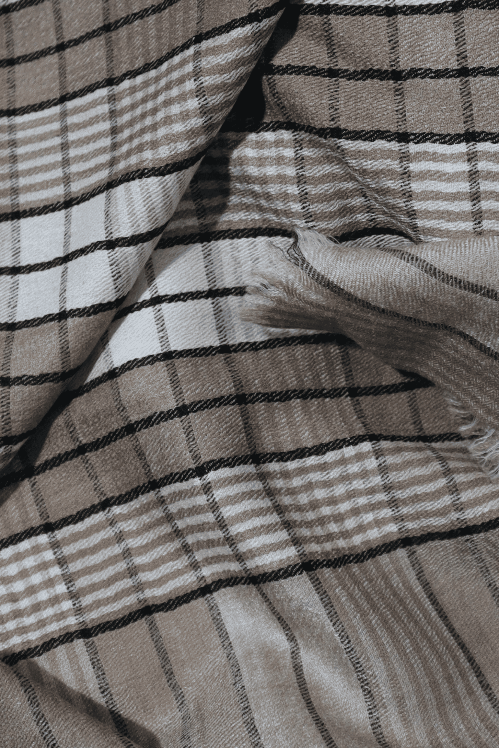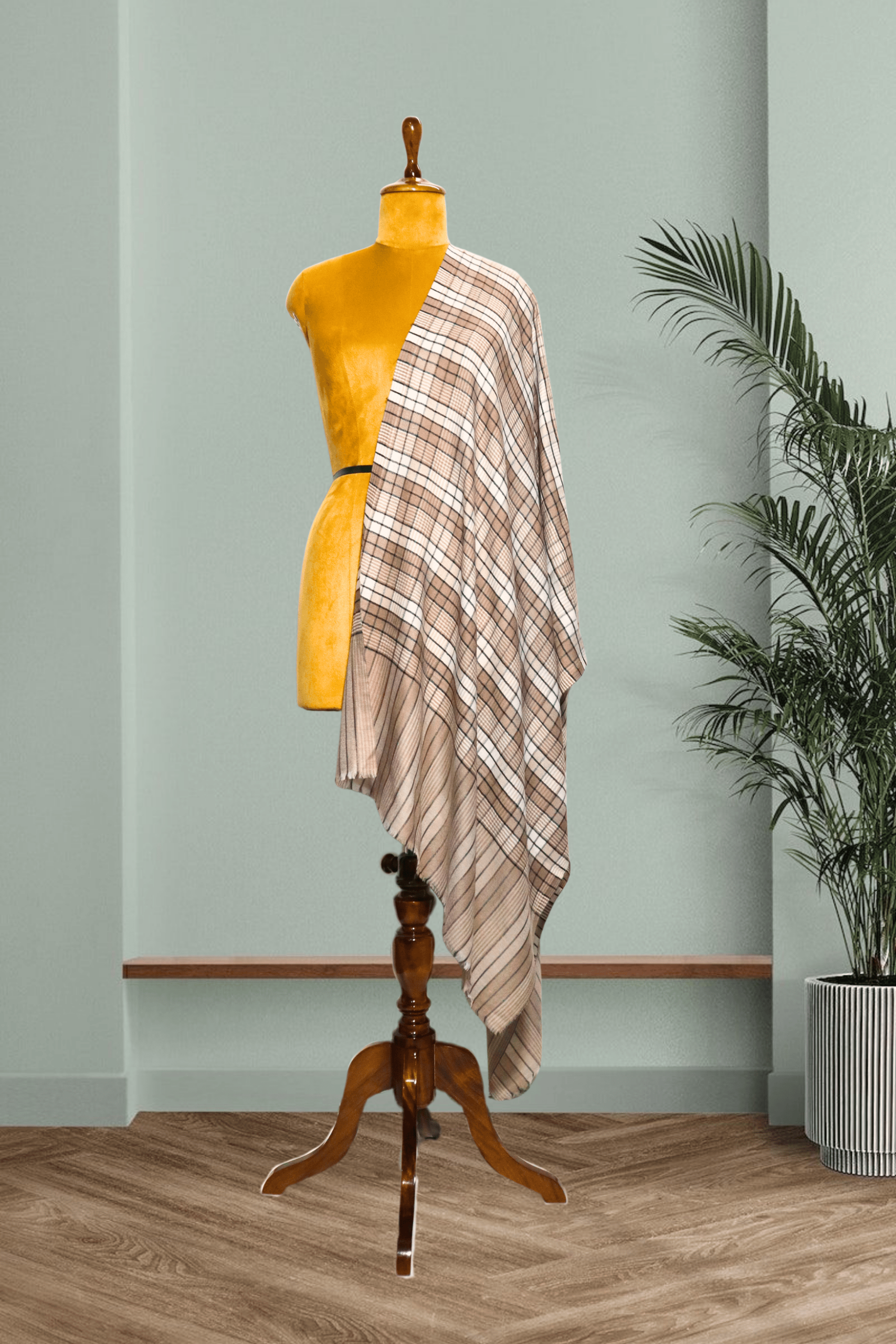 Cashmere Fine Wool Classic Check Stole in Cream, Tan, and Brown