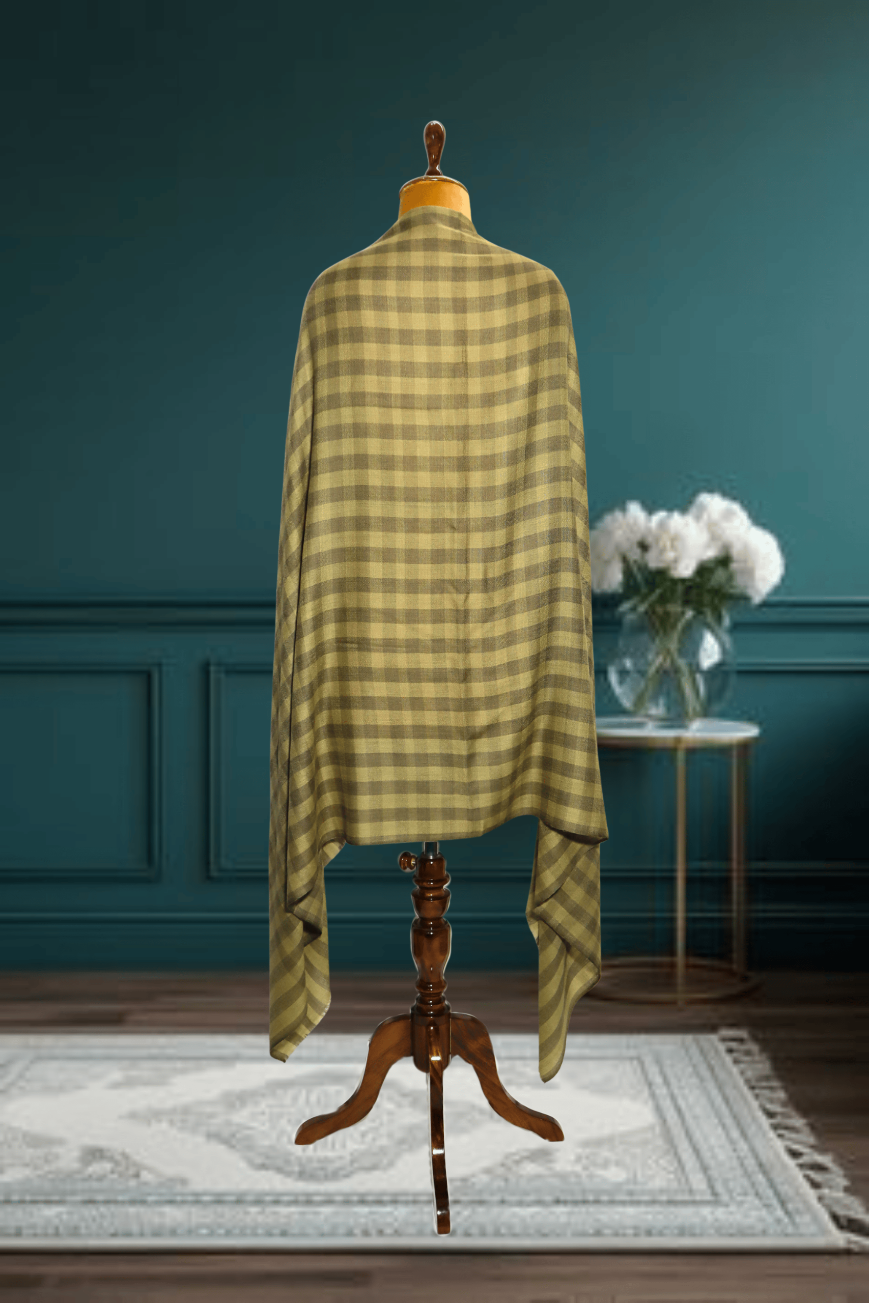 Cashmere Fine Wool Gingham Check Shawl in Olive Green and Khaki