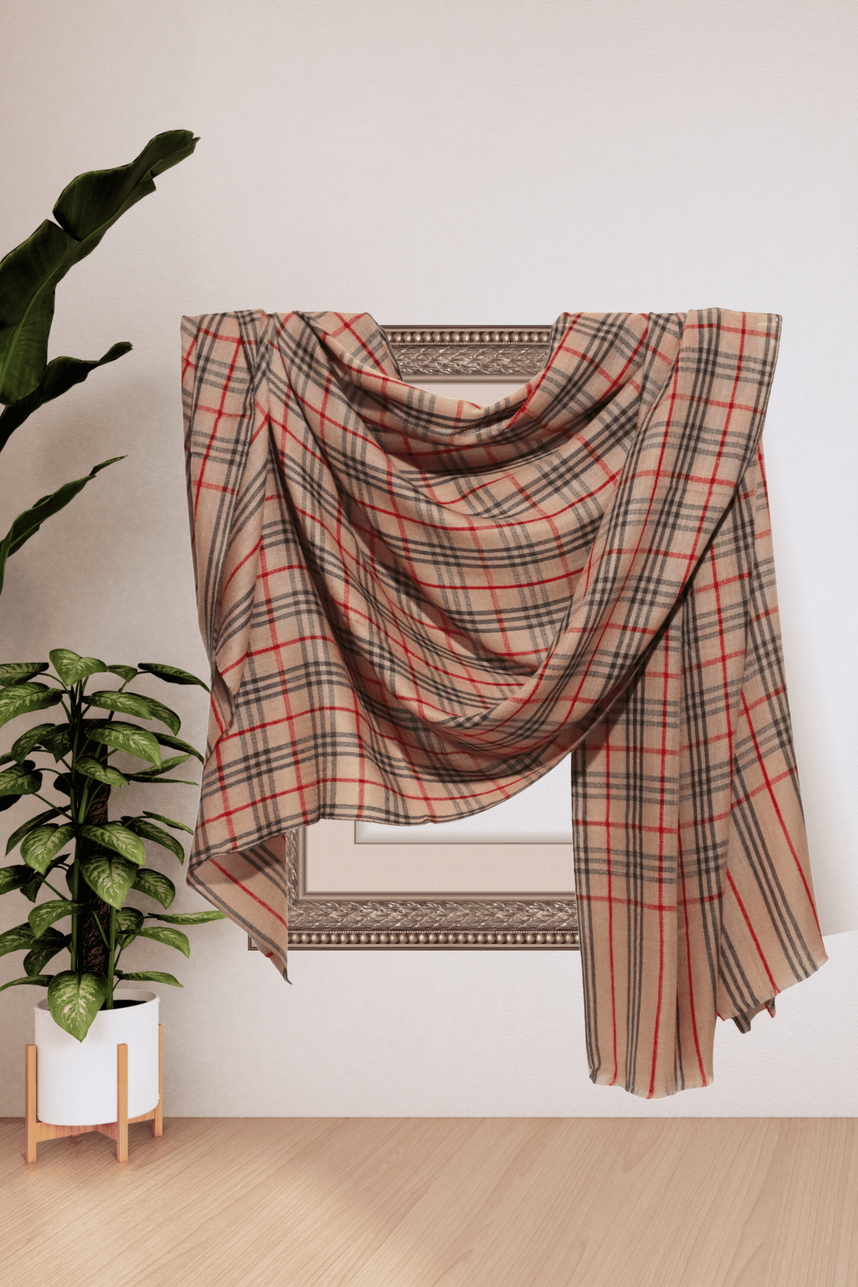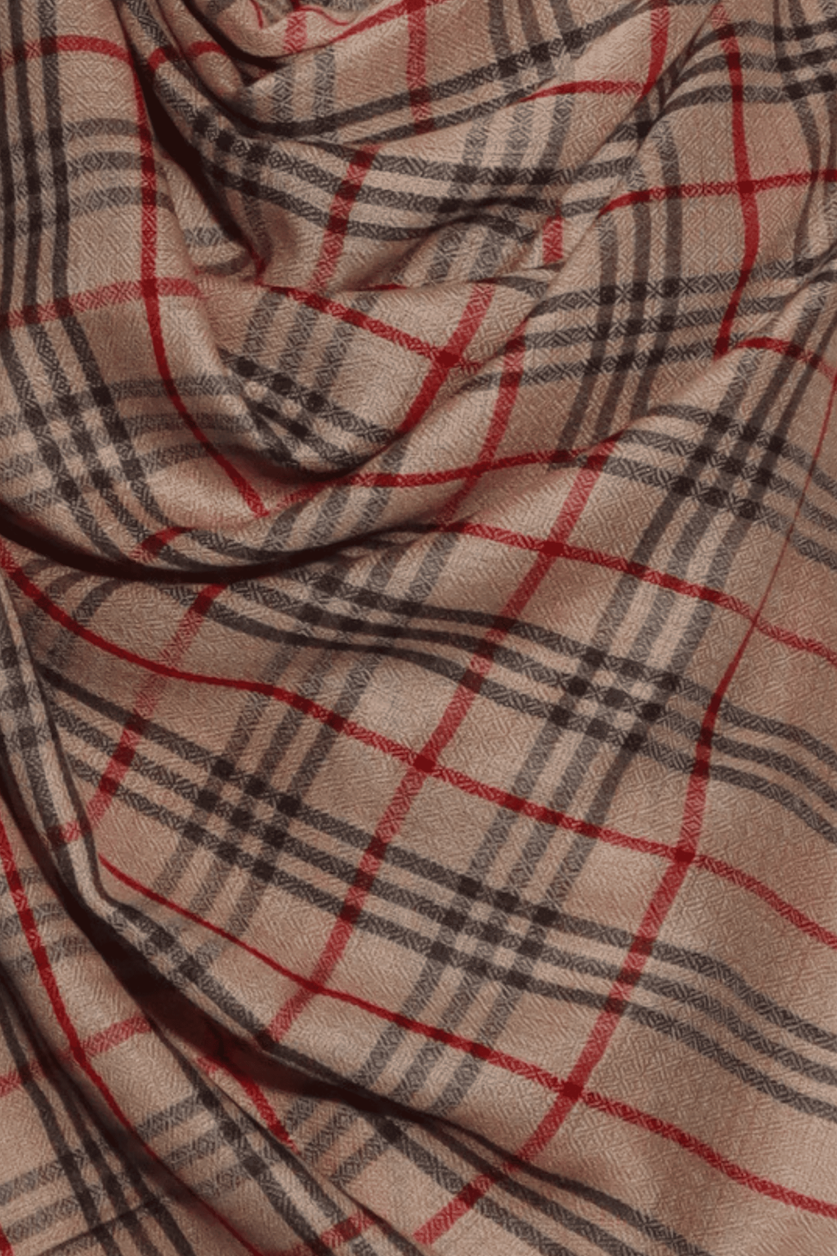Classic Cashmere Fine Wool Check Shawl in Beige, Black, and Red