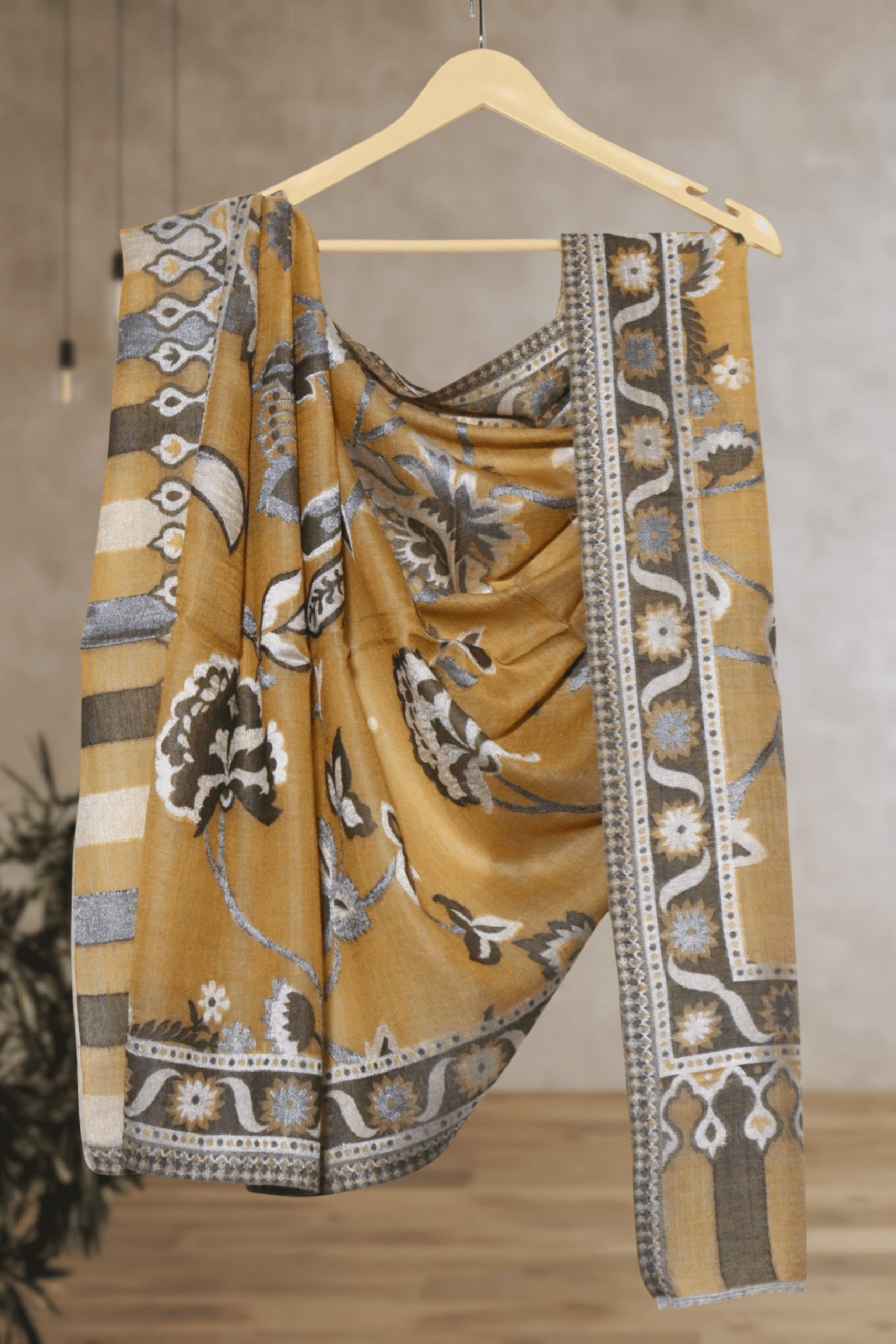 - Design: Densely woven traditional patterns covering the entire stole, known as “Poshkaar” for its full and rich design.