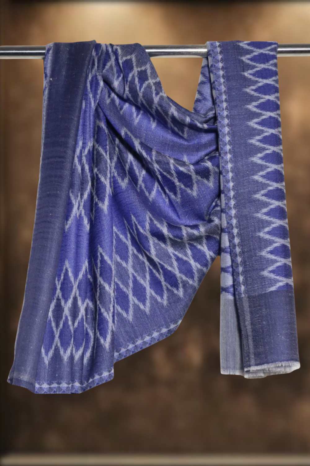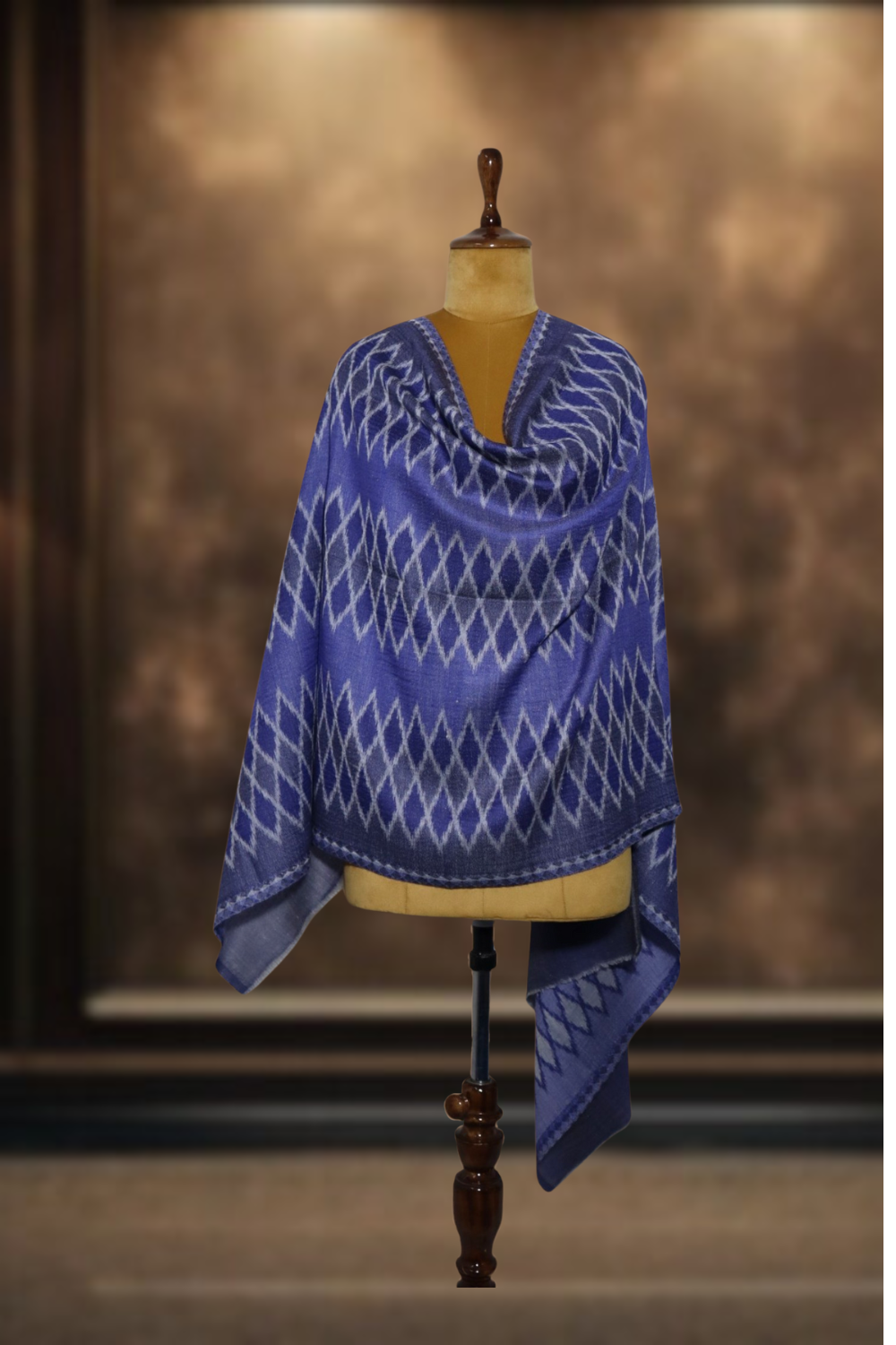 Ikkat Pashmina Stole (Royal Blue Diamond)