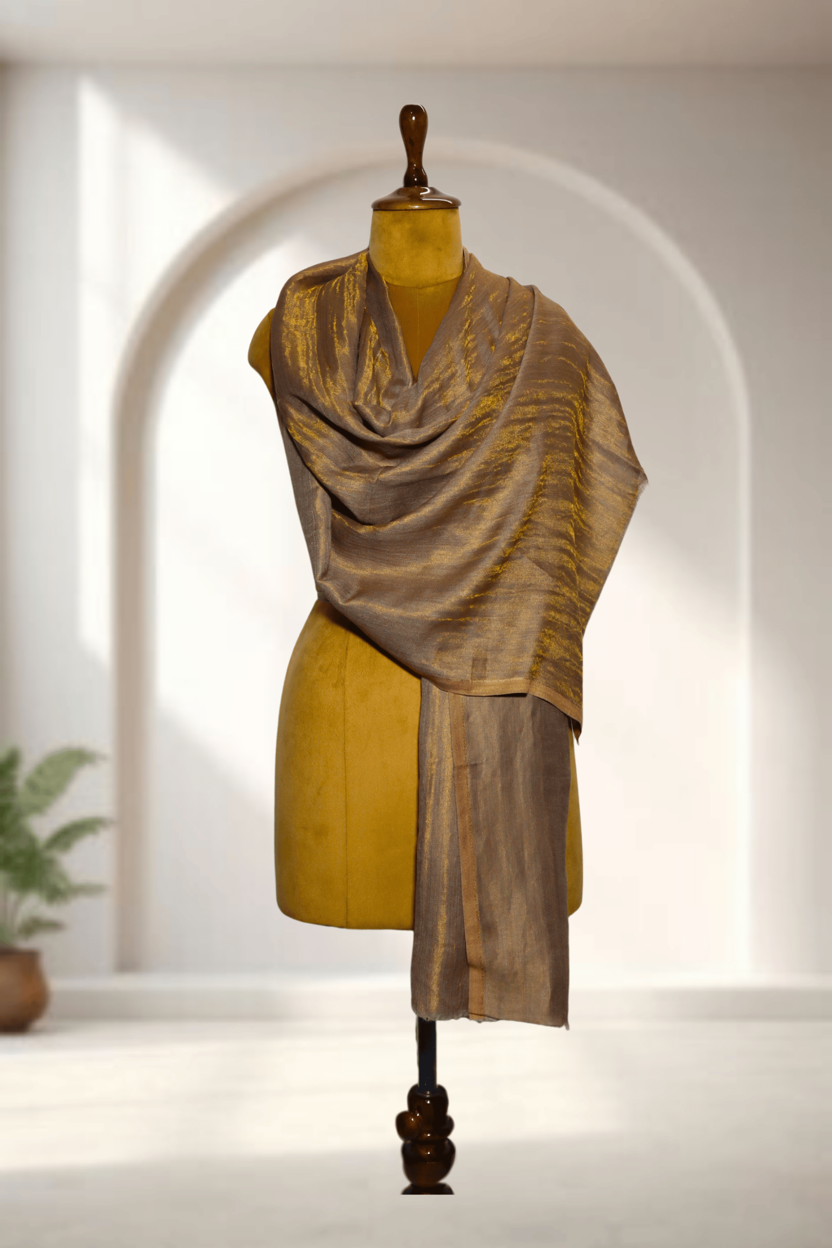 Iridescent Bronze & Gold Reversible Zari Cashmere Stole