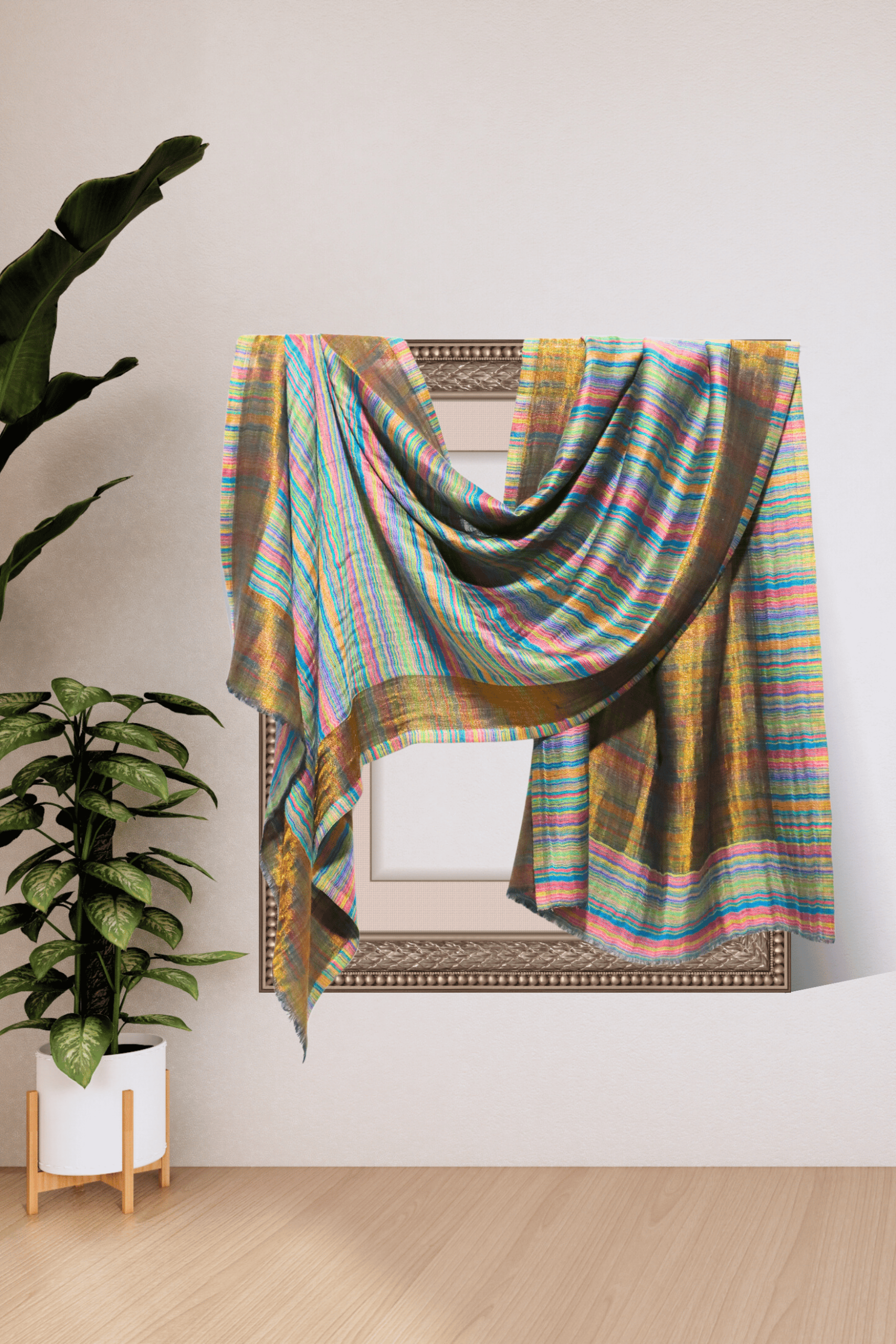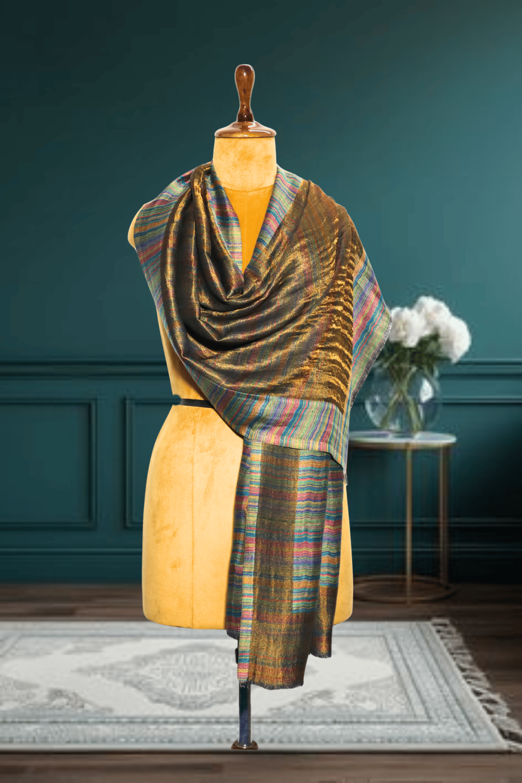 Iridescent Multi-Color Reversible Zari Striped Cashmere Stole