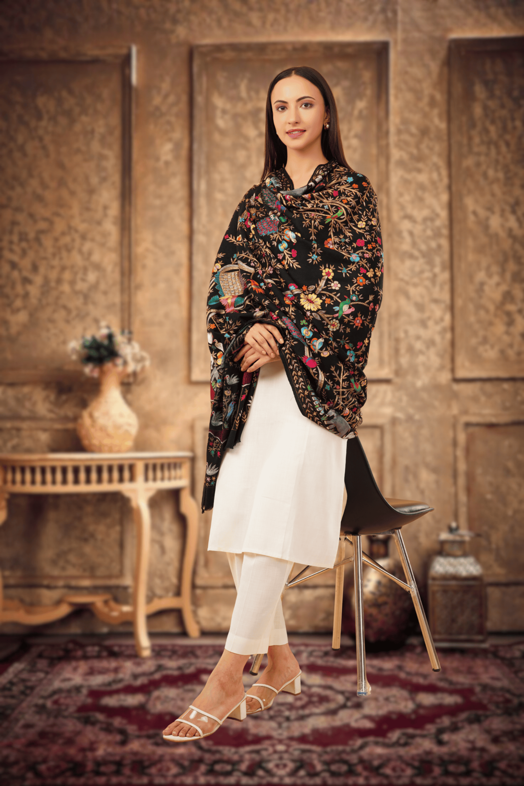 Kalamkari Zari Jama – Oversized Hand-Painted Pashmina Shawl