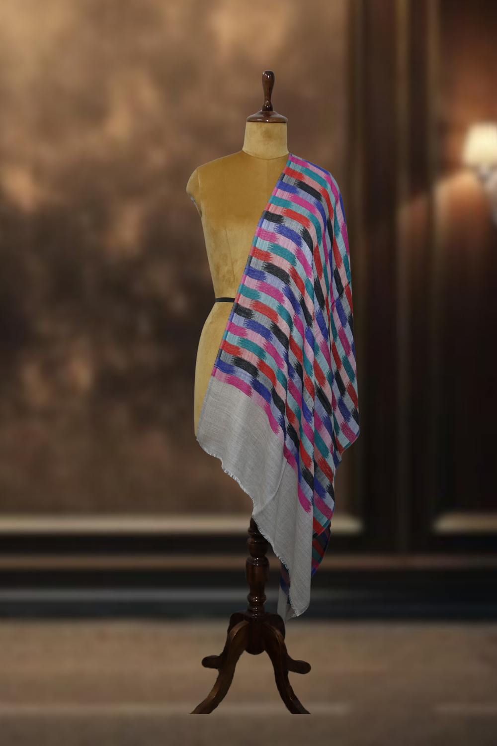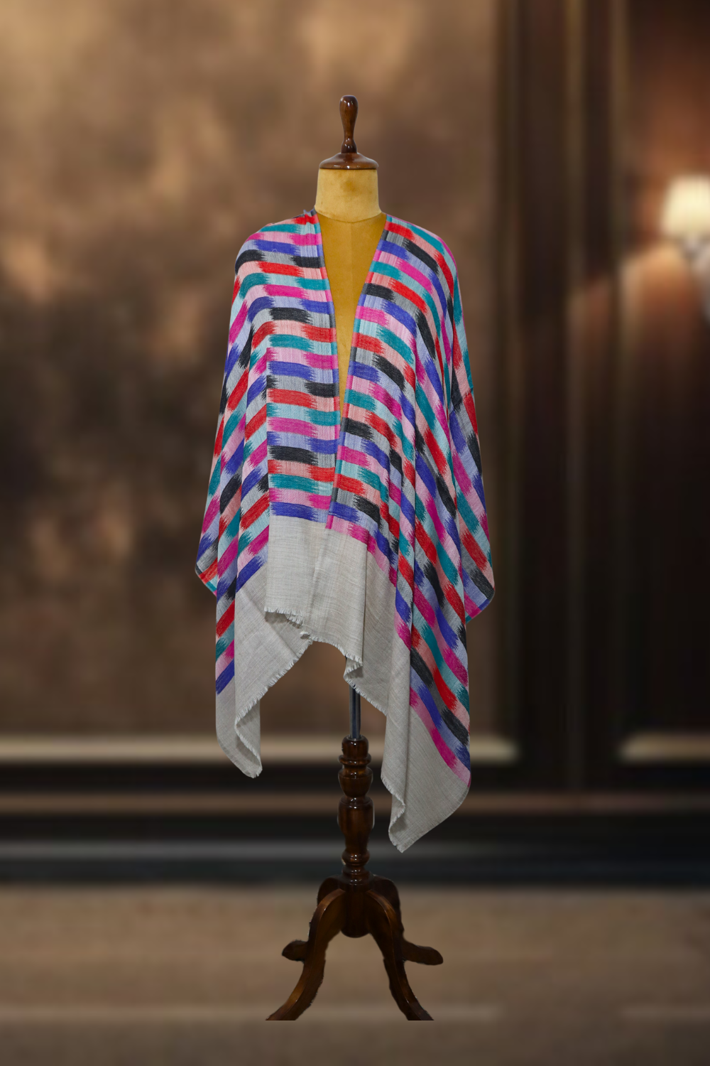 Kaleidoscope Stripe Ikkat Cashmere Stole