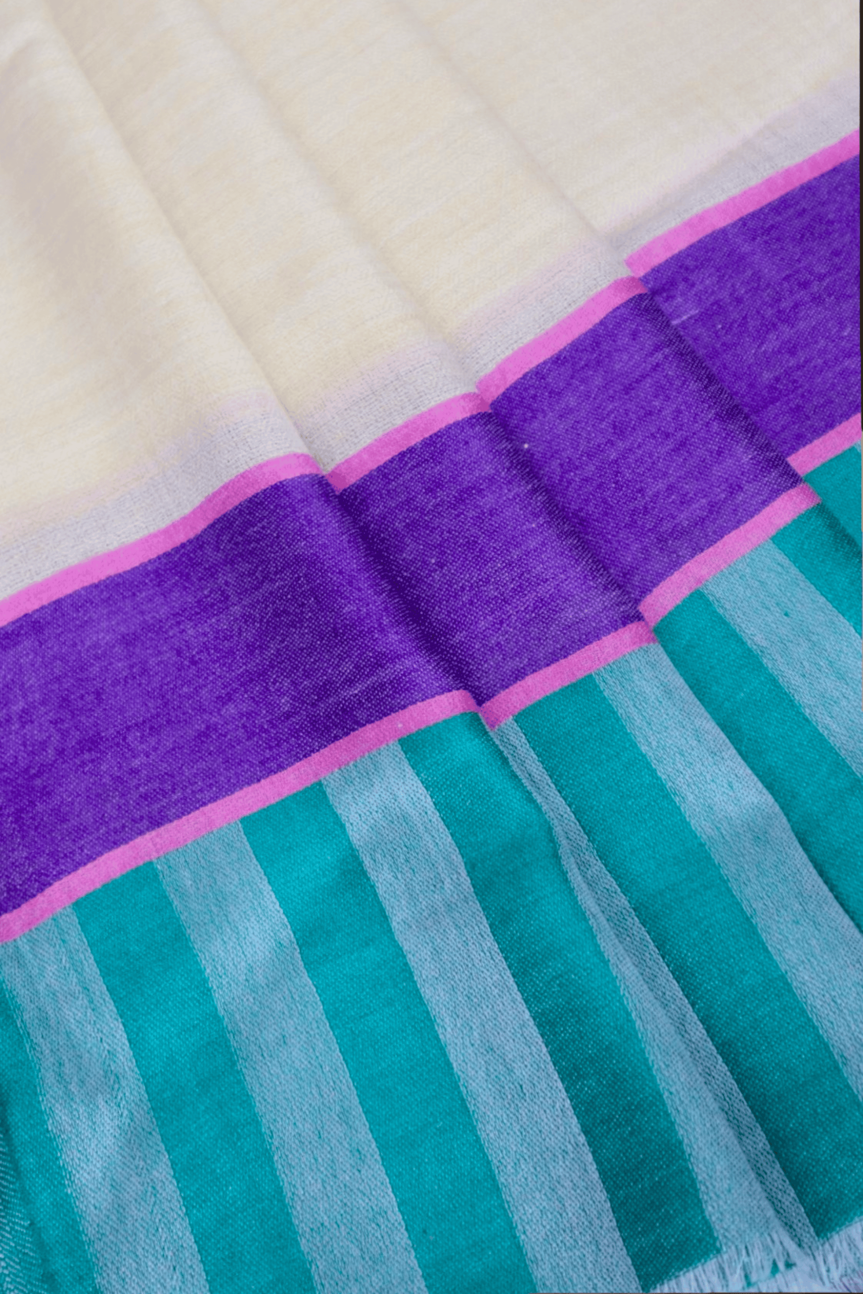 Light Blue Kani Stripe Palla Cashmera Fine Wool Stole