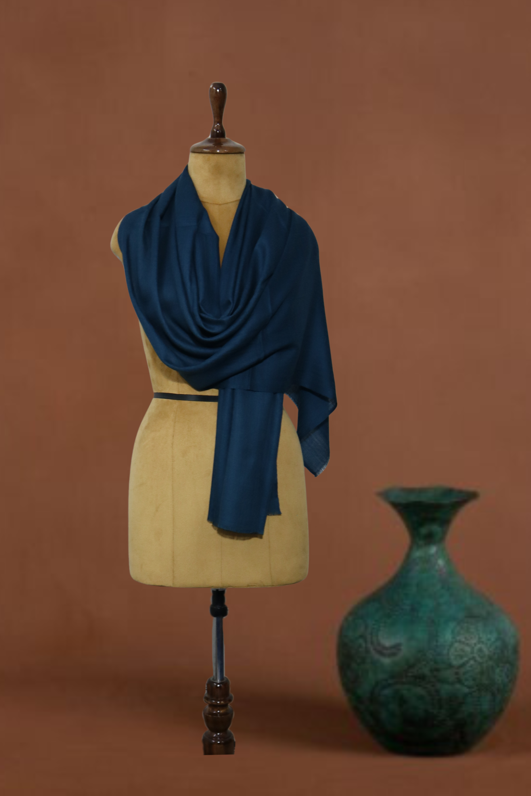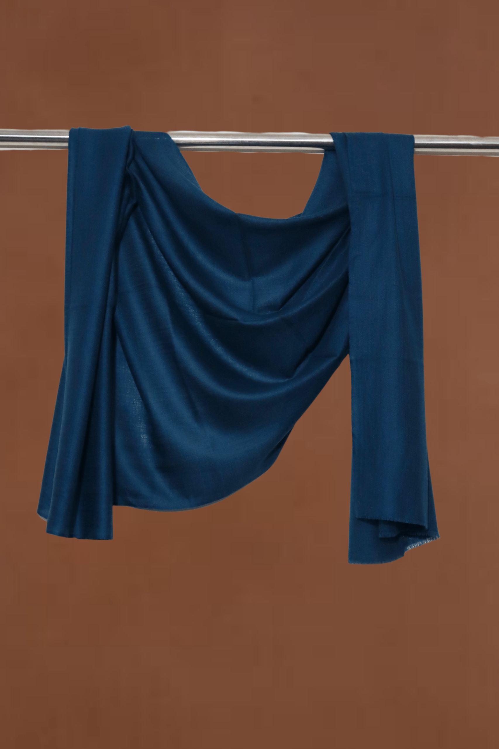 Wrap yourself in the rich, calming depth of this solid, hand-woven stole in a striking Deep Teal/Navy Blue hue. Crafted from premium Cashmere Fine Wool, this stole is exceptionally soft, lightweight, and incredibly warm. The plain design emphasizes the luxurious texture and drape of the fiber, offering a sophisticated and versatile accessory. Perfect for adding a rich pop of color to any ensemble, this piece showcases the subtle brilliance of Kashmiri weaving tradition and is an essential addition to a refined wardrobe