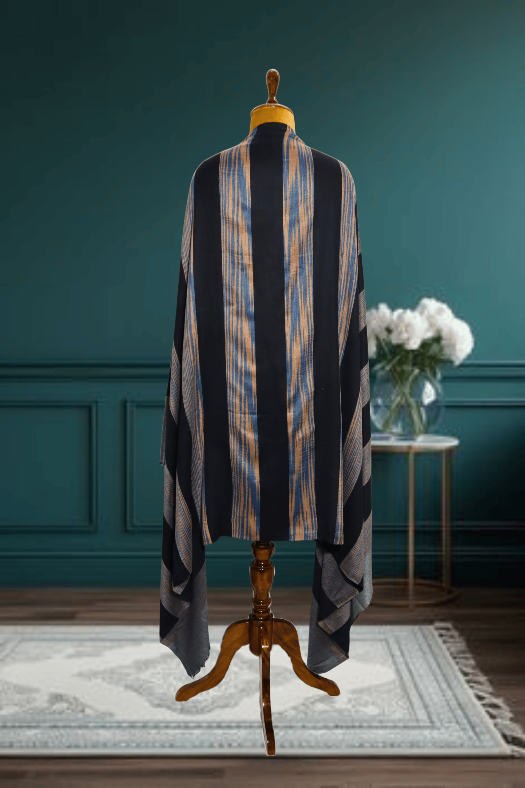 Ikkat Pashmina Stole (Blue Striped)