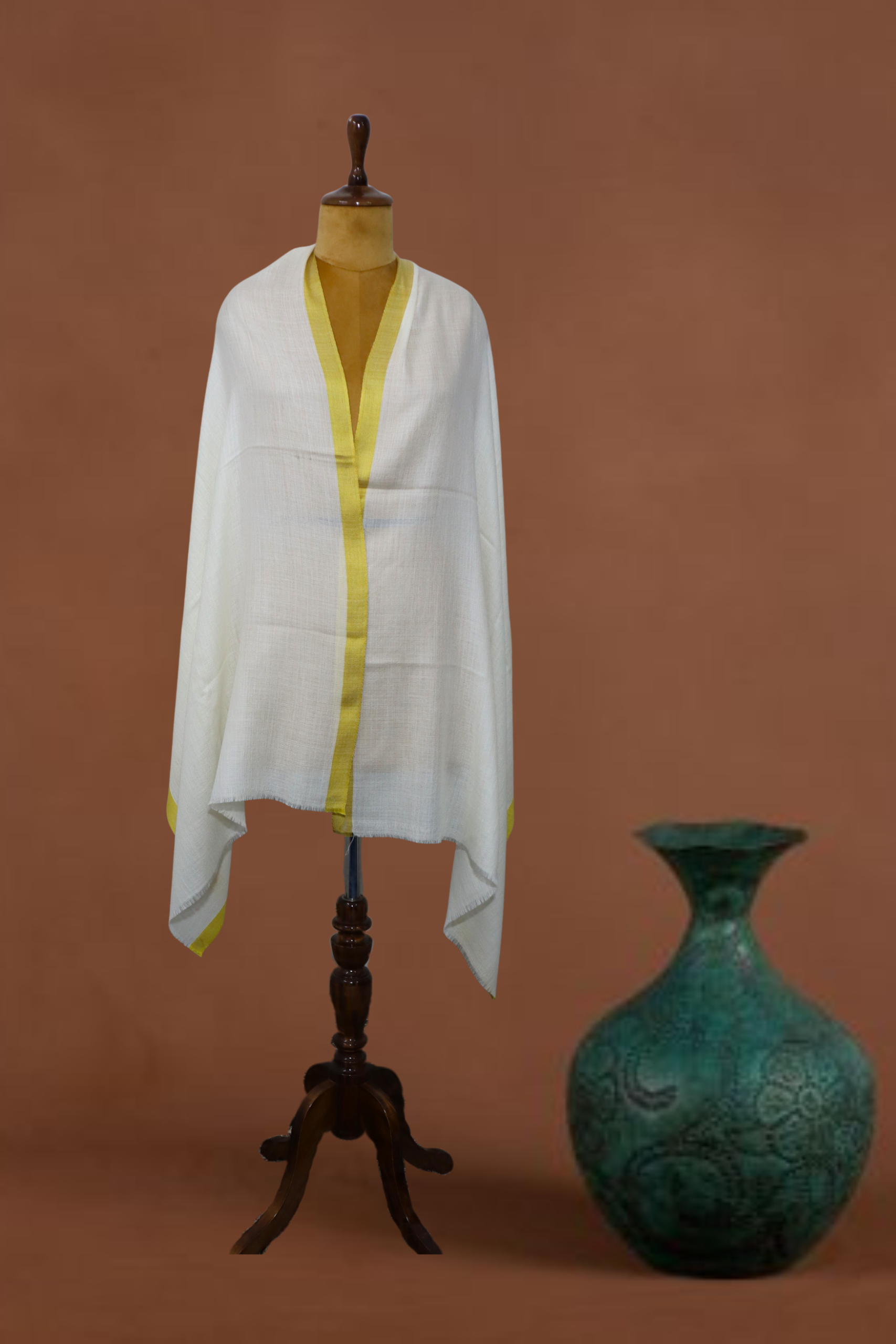 Off white Solid Hand-Woven Cashmere Fine Wool Stole with Bright Yellow Border