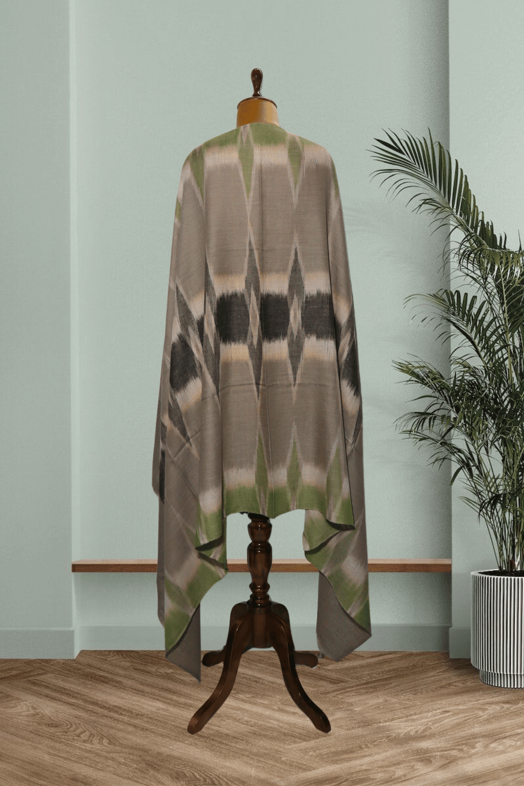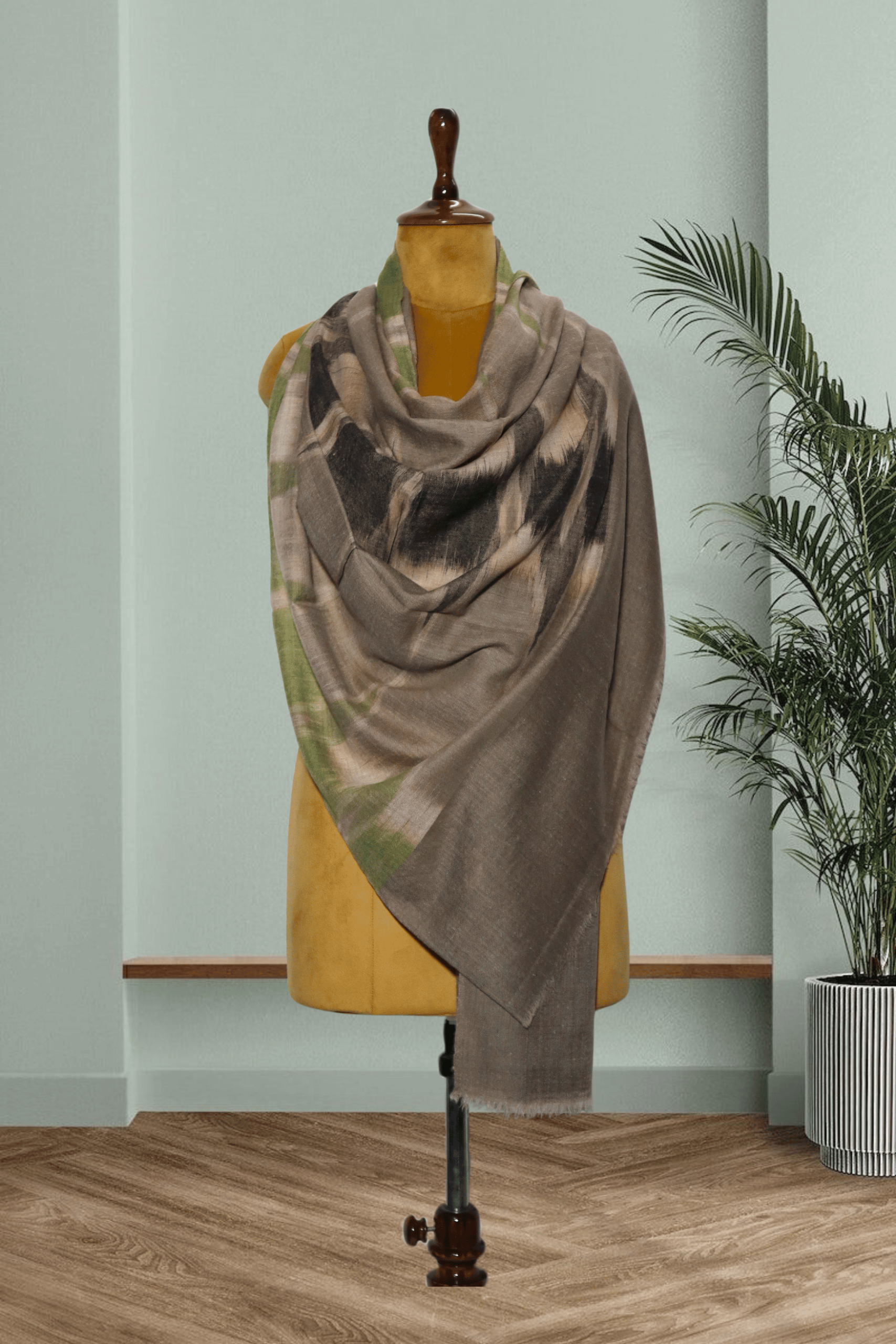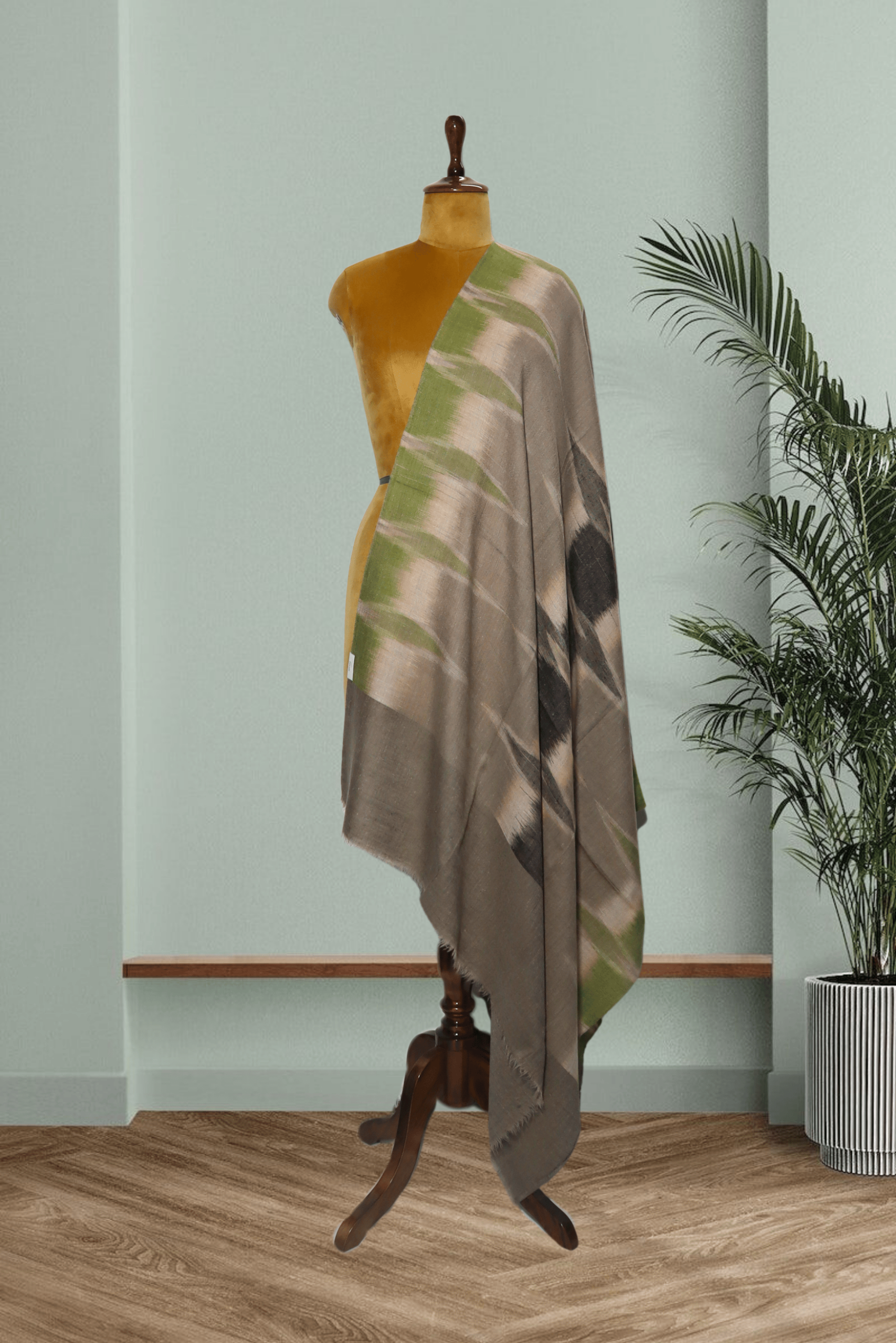 Olive & Grey Pure Pashmina Ikkat Shawl