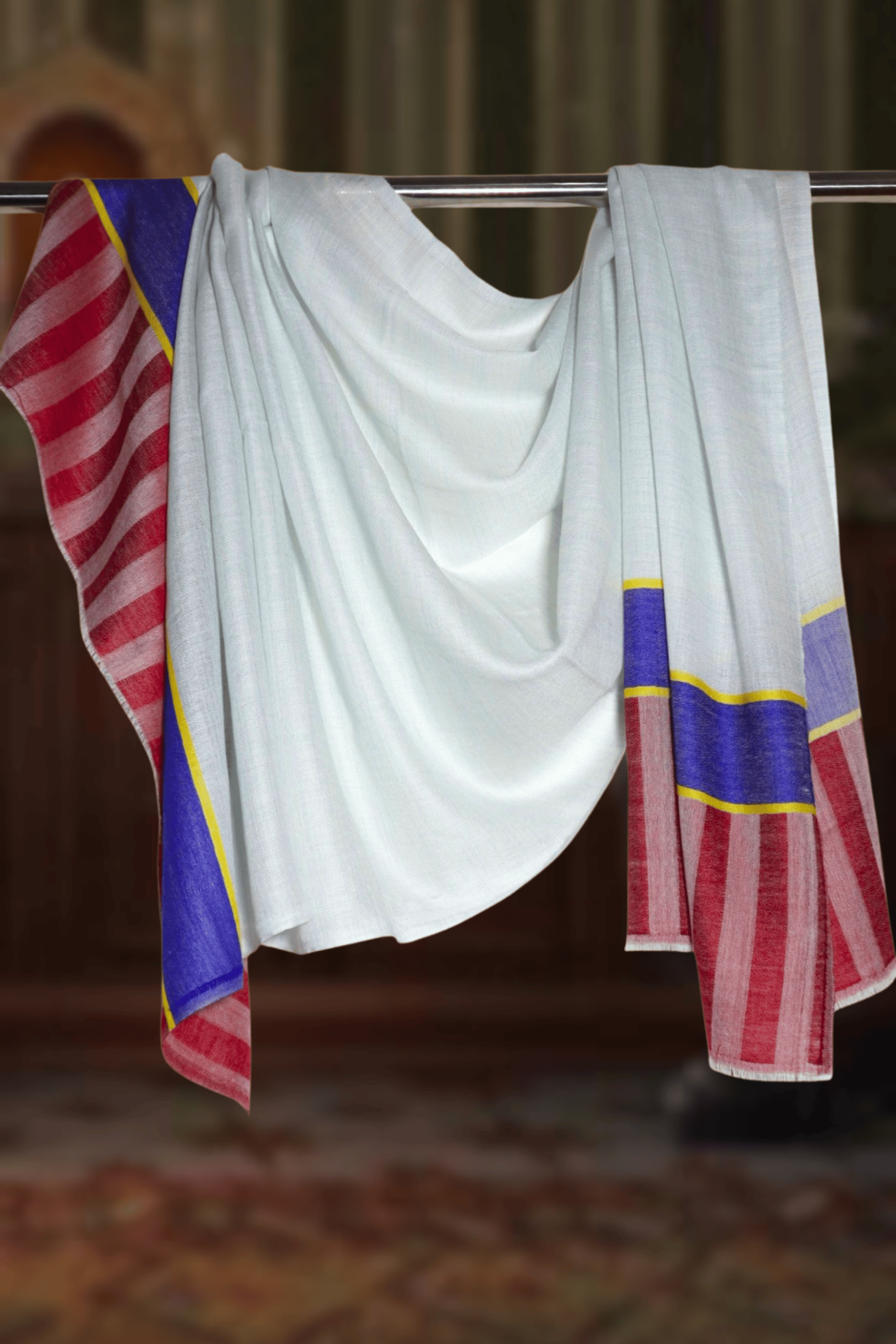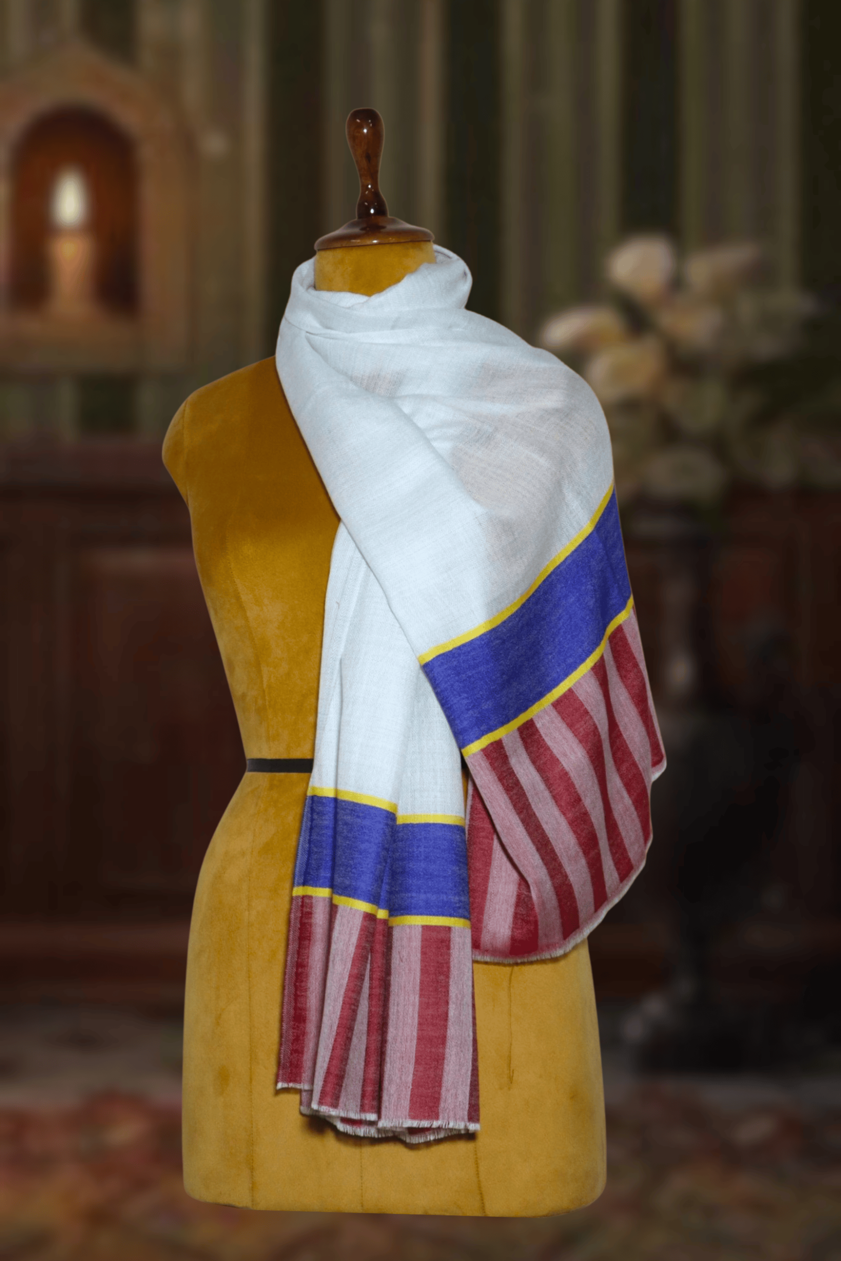 Orange Kani Stripe Palla Cashmera Fine Wool Stole