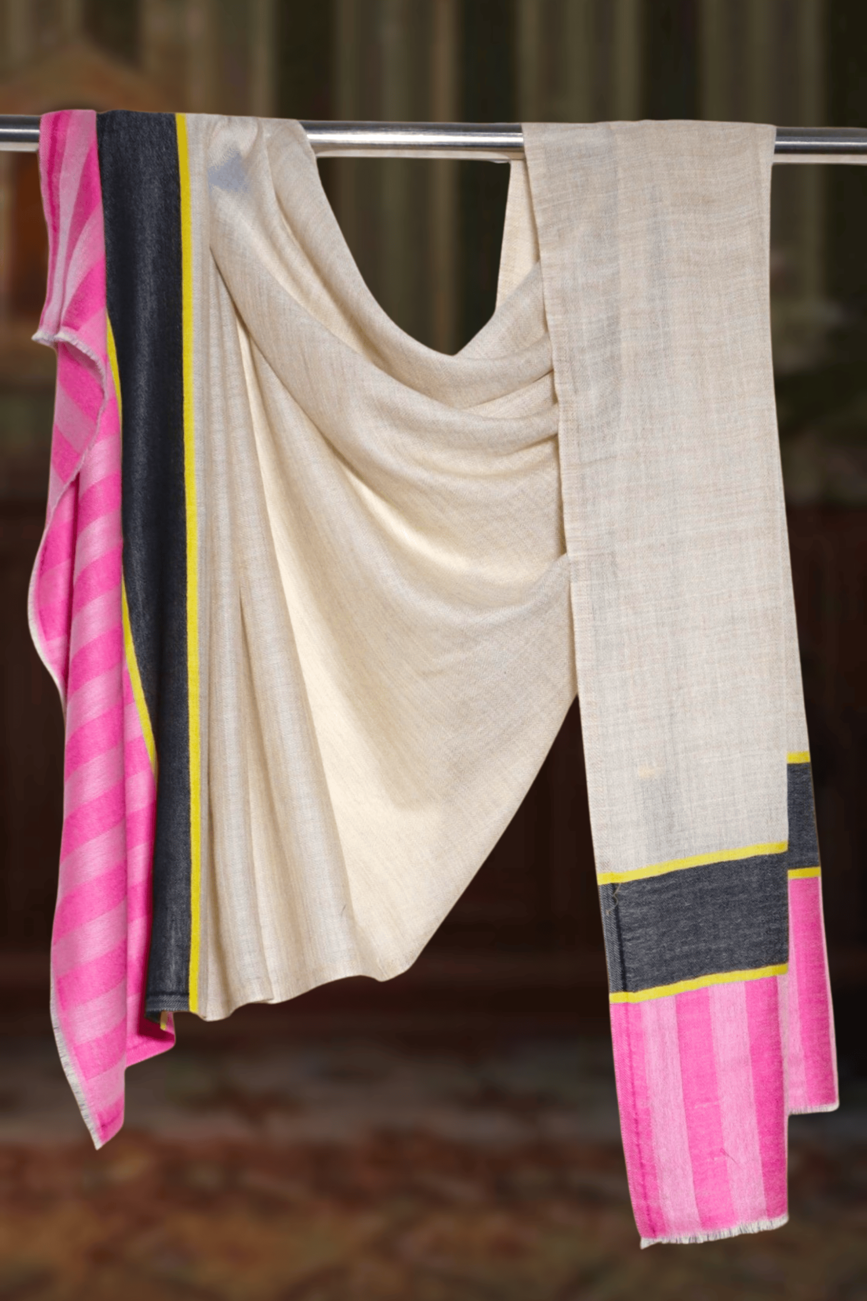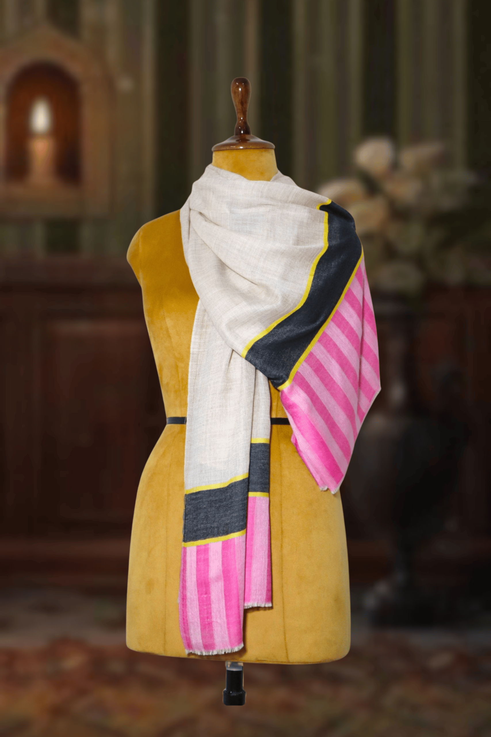 Pink Kani Stripe Palla Cashmera Fine Wool Stole