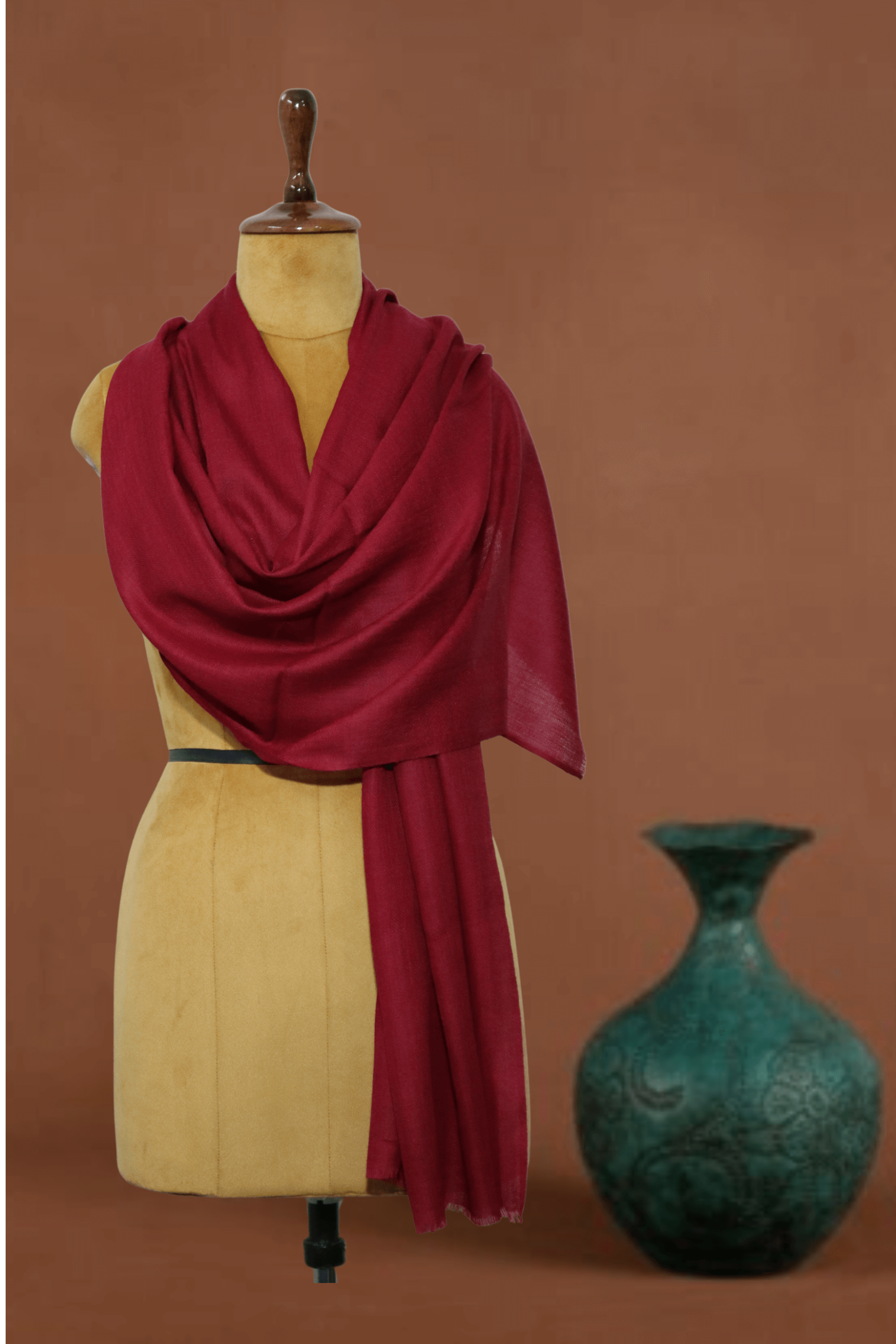 Embrace rich color with this beautifully crafted solid, hand-woven stole in a captivating Deep Burgundy/Maroon. Made from high-quality Cashmere Fine Wool, this stole feels exquisitely soft against the skin while providing excellent warmth. The deep, sophisticated color and the subtle, plain weave allow the natural luster and fine drape of the luxurious fiber to take center stage. This versatile piece is perfect for elevating formal evening wear or adding a touch of bold, classic elegance to your everyday look.