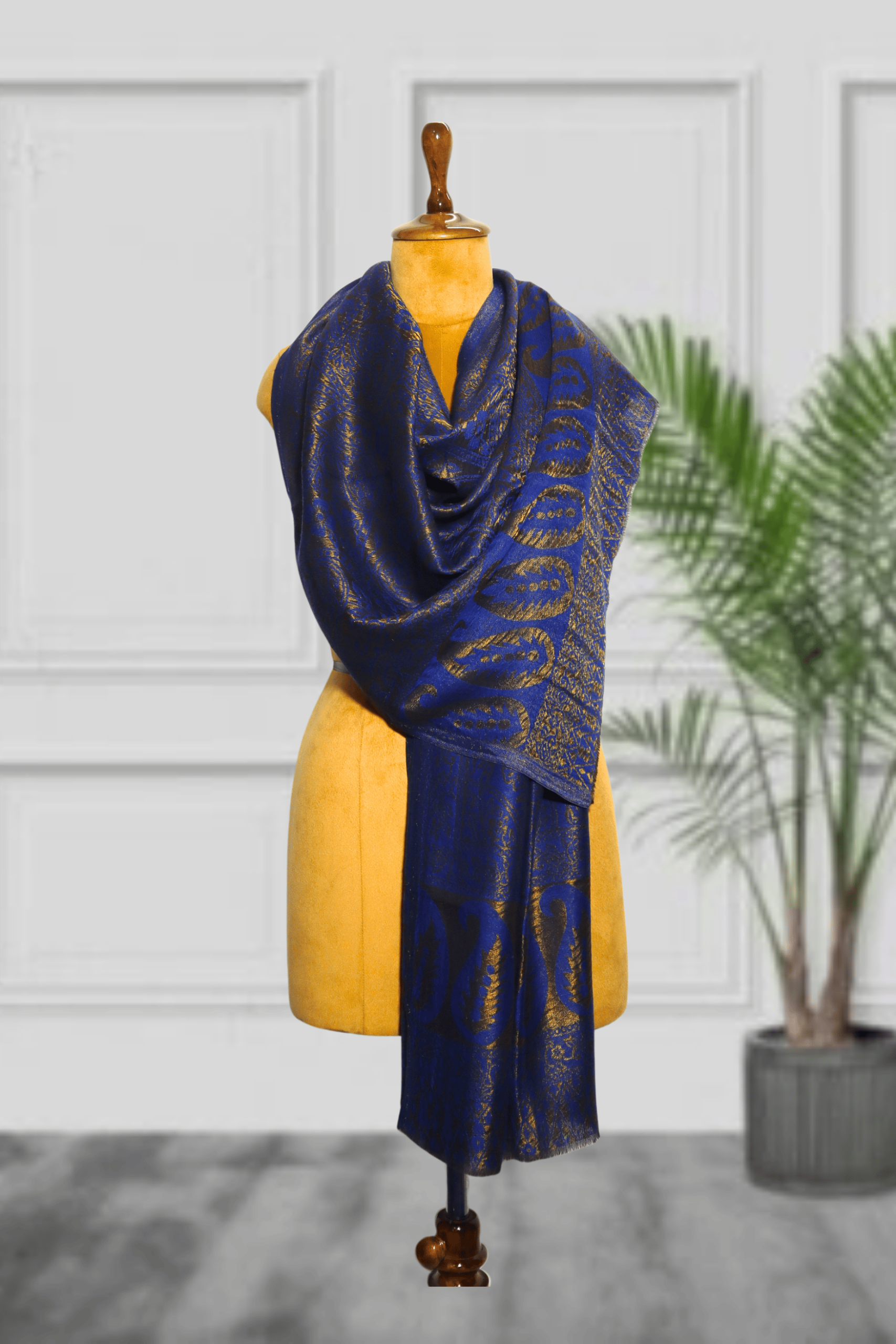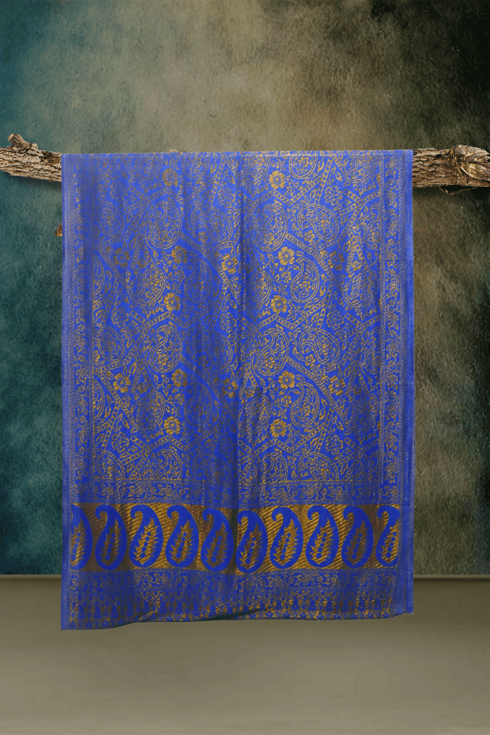 Royal Blue & Gold Zari Jamawar Cashmere Fine Wool Stole