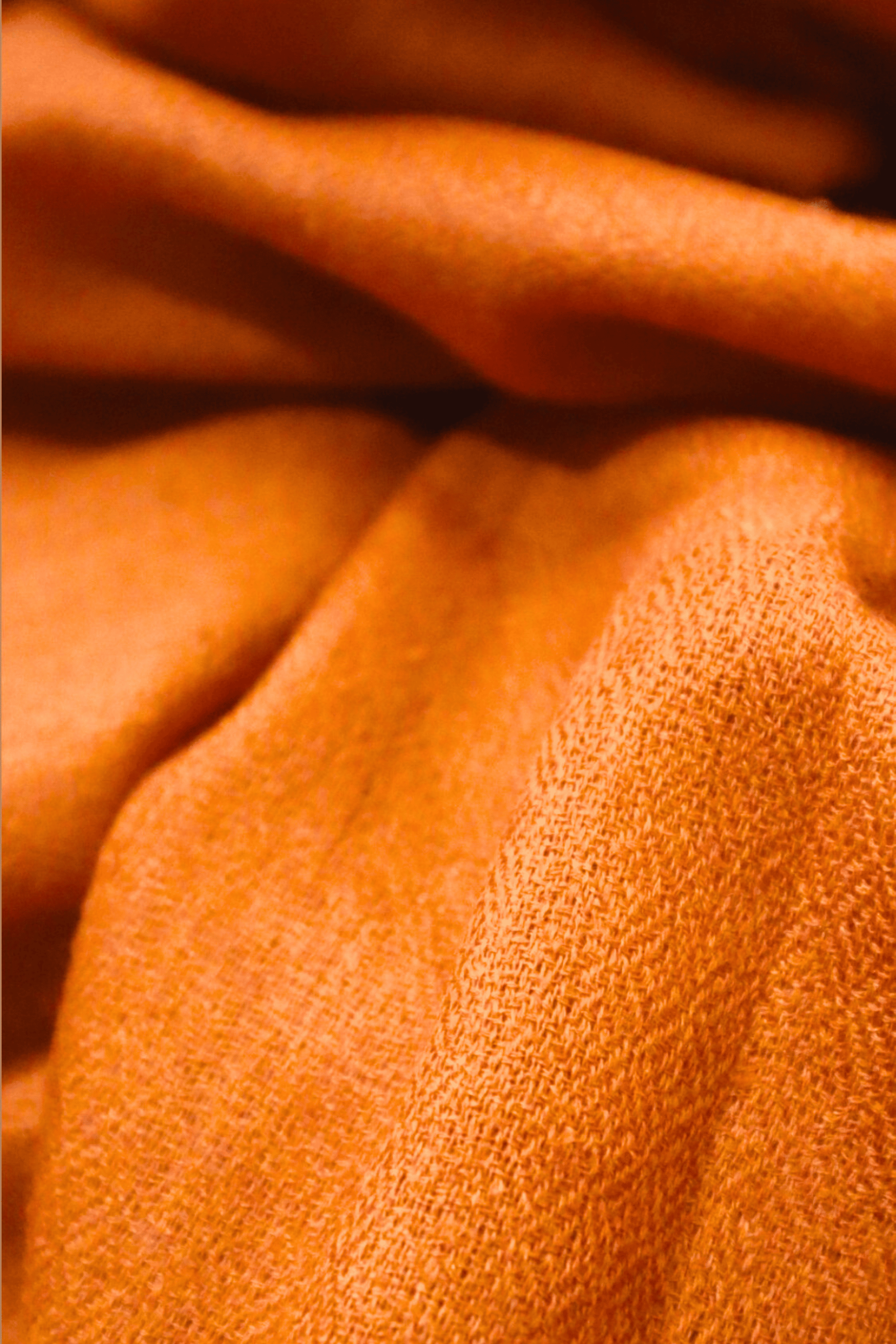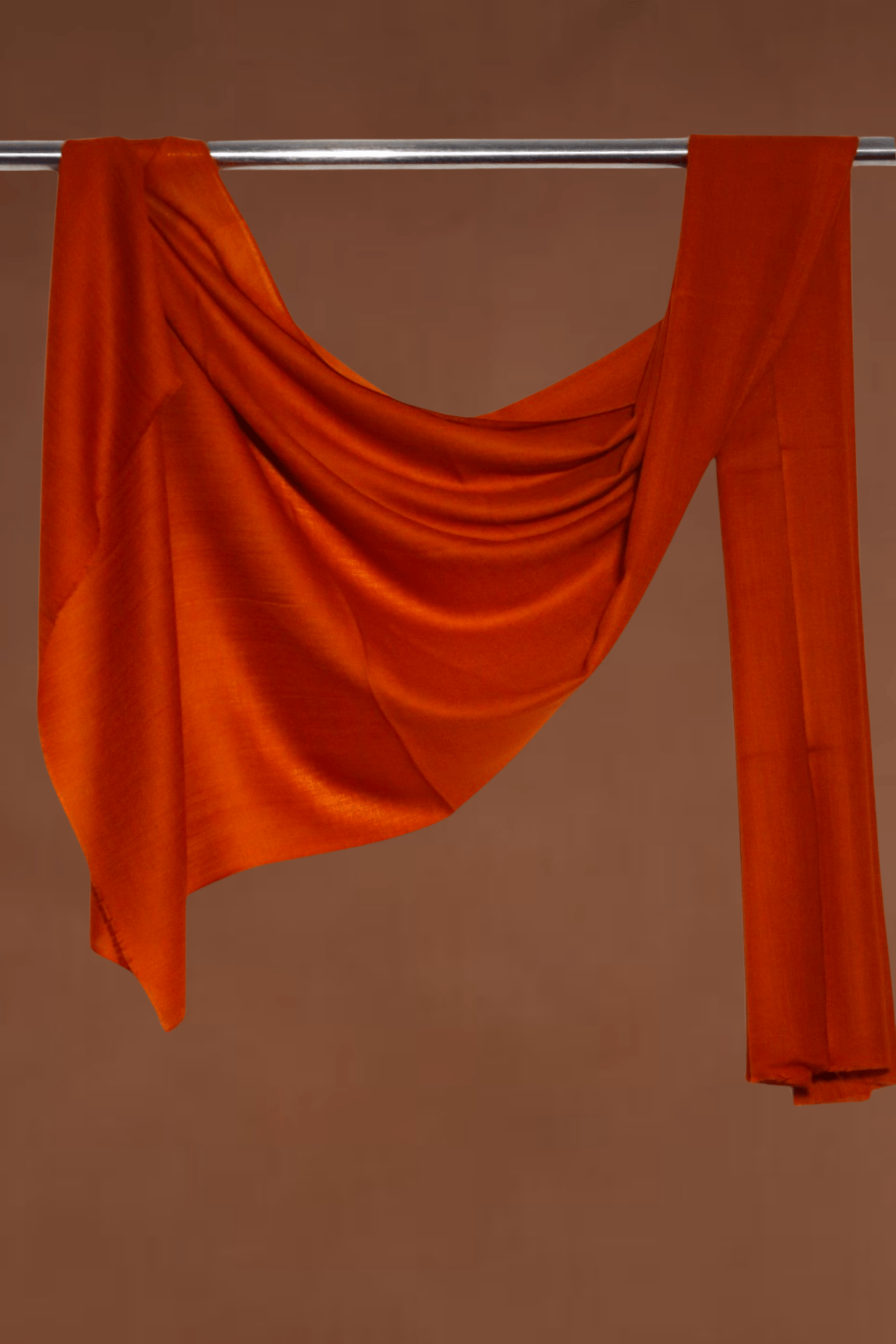 Embrace the warm hues of autumn with this Rust Orange Solid Fine Wool stole. This beautifully soft and lightweight stole is made from fine wool, offering a comfortable and cozy feel. The consistent rust orange color is rich and inviting, making it a perfect accessory to add an earthy yet vibrant touch to your attire.